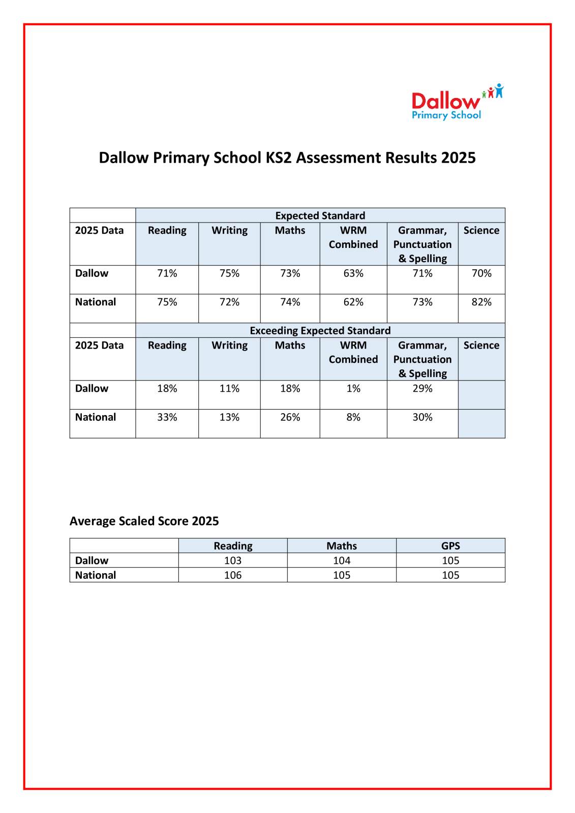 2025 KS2 Performance Data